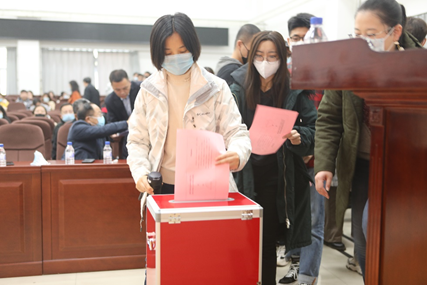 党员大会选举办法(草案)》、监票人和计票人建议名单。随后,按照选举程序和选票填写要求,与会党员严格按照指定顺序和路径有序投票,认真履行职责。