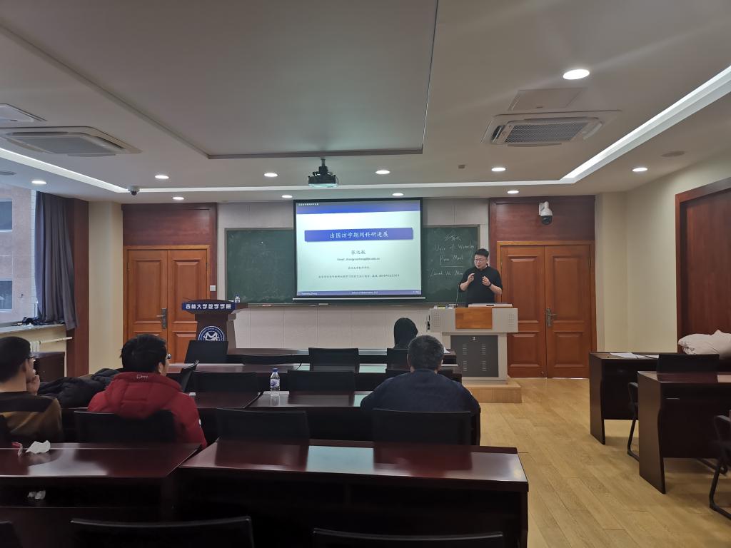 在数学楼一楼第二报告厅组织召开了青年教师出国学习经验交流汇报会。学院党委书记张然教授出席本次会议,学院部分学术委员会专家及青年骨干教师参加了本次会议。