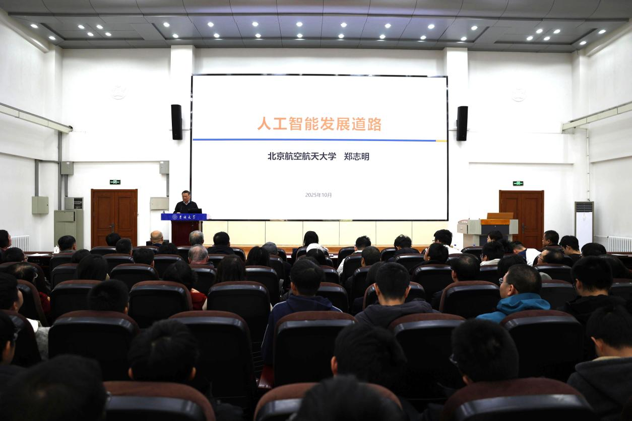 郑志明教授从我国科技和产业发展的三个重大发展阶段谈起,梳理了国家从工程创新、技术创新到基础创新的时代变革,阐述了国家从实现立国战略、大国战略到强国战略的目标变化。他表示,大数据时代的到来给人工智能带来了巨大挑战,人工智能的未来发展需要遵循数理规律。希望师生们在人工智能领域积极开展原创性研究,利用数学优势,形成具有自主知识产权的技术和方法,为国家的科技强国战略作出应有的贡献。