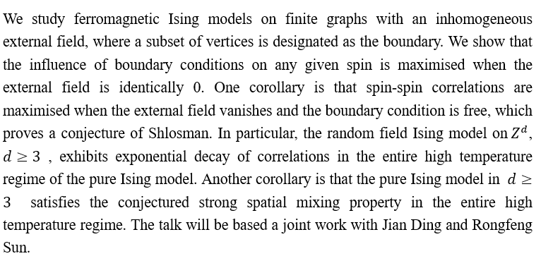 报告人简介:宋健,山东大学教授,海外高层次人才,2010年博士于美国堪萨斯大学,先后于美国Rutgers大学New Brunswick分校、香港大学工作,2018年任山东大学教授。宋健教授的研究方向为随机偏微分方程、随机矩阵、分数布朗运动、随机分析及其应用(包括随机控制、信息论、数理金融)、统计物理模型等。相关研究成果发表在Annals of Probability,Annals of Applied Probability, Bernoulli, SIAM Journal on Mathematical Analysis 以及Stochastic Processes and Their Applications等概率论与随机分析高水平期刊上。