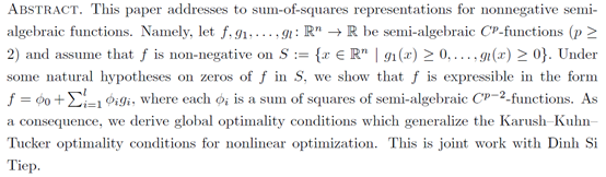报告题目:REPRESENTATIONS OF NONNEGATIVE FUNCTIONS AND GLOBAL OPTIMALITY CONDITIONS