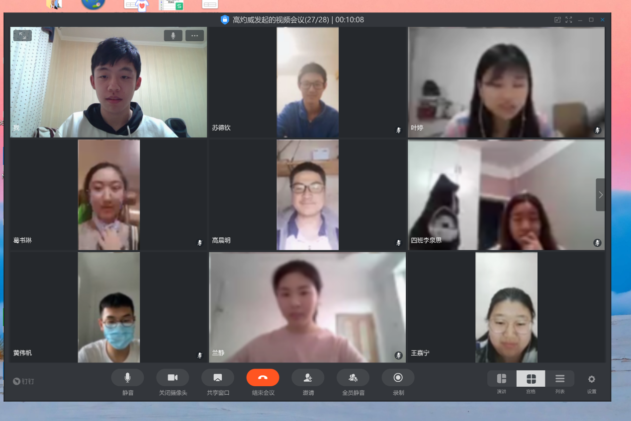 19级4班的同学们在线上举行以劳动节为中心的主题班会。正又是因为这次的主题班会处于疫情防控的紧要关头,大家将这次的班会紧紧地和在疫情一线奋战的白衣天使联系起来。班会先是由班长带头发言之后,同学们再各抒己见。
